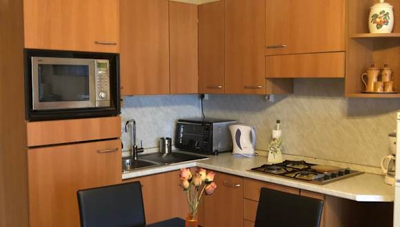 Die Unterkunft ist eine Ferienwohnung mit Meerblick, die eine Terrasse und einen Balkon umfasst. Die Wohnung ist in einem Block untergebracht und von einem privaten Gastgeber geführt. Check-in ist ab 16:00 Uhr bis 19:00 Uhr möglich, während der Check-out zwischen 10:00 Uhr und 11:00 Uhr erfolgen muss. Es sind keine Junggesellen- oder ähnliche Feiern gestattet. Das Mindestalter für den Check-in beträgt 18 Jahre.