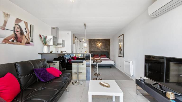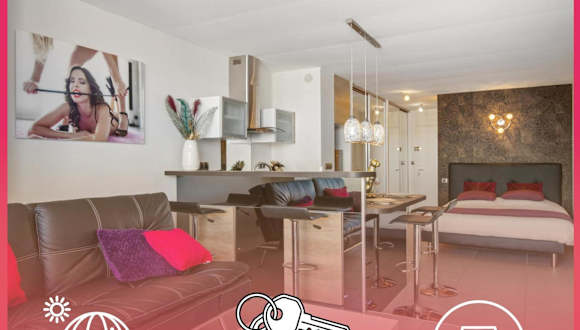 Das klimatisierte Apartment im Village Naturiste R4N - Le Wildly Héliopolis Luxe verfügt über ein Schlafzimmer, ein Wohnzimmer und eine voll ausgestattete Küche mit einem Kühlschrank und einer Kaffeemaschine. Das Apartment bietet zudem ein Badezimmer mit Dusche und kostenlosen Pflegeprodukten. Handtücher und Bettwäsche werden gestellt. Eine Terrasse steht den Gästen zur Verfügung.
