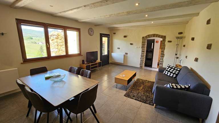 Das Ferienhaus umfasst zwei Schlafzimmer, ein Wohnzimmer, sowie eine gut ausgestattete Küche mit Kühlschrank und Geschirrspüler. Ein Badezimmer mit Badewanne, ein Flachbild-TV und eine Terrasse mit Bergblick sind ebenfalls vorhanden. Zur Ausstattung gehören außerdem ein Balkon, Handtücher und Bettwäsche.