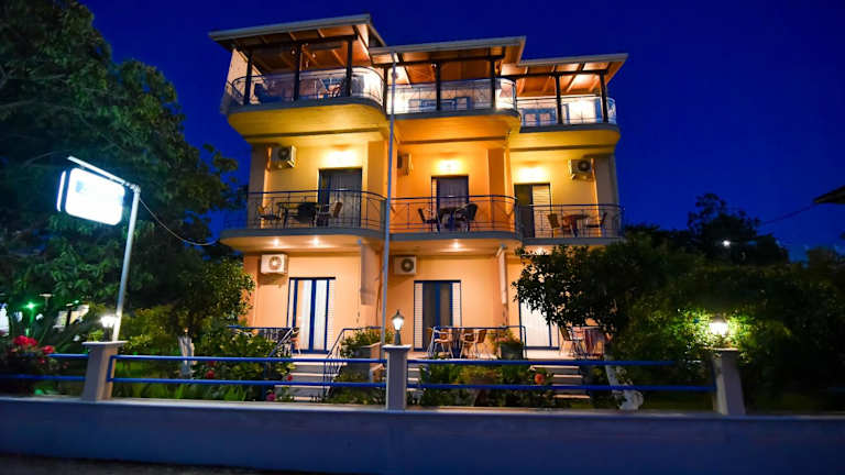 Das Hotel Leader in Mitikas bietet eine ideale Lage nur 200 m vom Strand Monolithi entfernt. Hier können Sie in einer gemütlichen Unterkunft mit eigenem Balkon und Blick auf den schönen Garten entspannen. Das Hotel verfügt über kostenfreies WLAN und eine schattige Terrasse mit Grillplatz. Die Nähe zu Bäckereien, dem Busbahnhof und anderen Stränden macht es zu einem perfekten Ausgangspunkt für Ihren Urlaub.