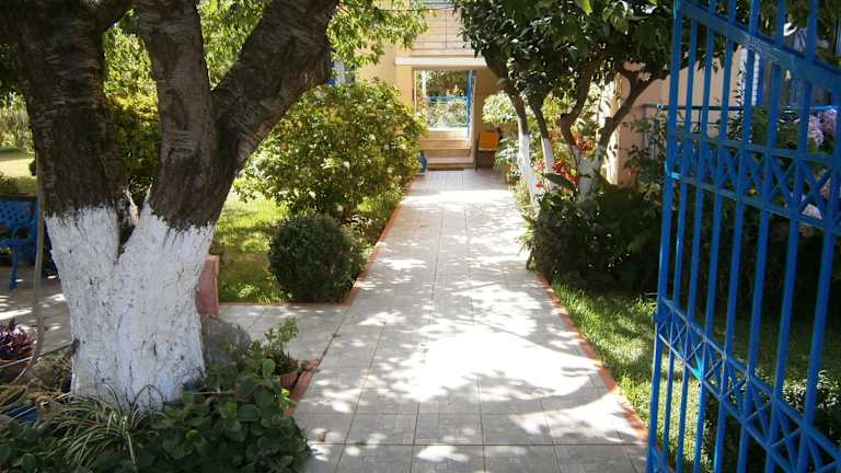 Der große, gepflegte Garten des Hotels ist ein idealer Ort zum Entspannen. Hier finden Sie Blumen und Bäume, die für eine angenehme Atmosphäre sorgen. Der Strand Monolithi ist nur einen kurzen Spaziergang entfernt und lädt zum Sonnenbaden und Schwimmen ein. In der Umgebung gibt es auch viele Möglichkeiten für Outdoor-Aktivitäten wie Wandern und Radfahren.