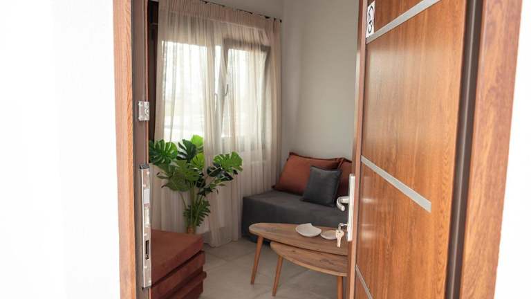 Die Wohneinheiten sind mit Klimaanlage, eigenem Badezimmer sowie einer Küche ausgestattet, die einen Kühlschrank, einen Ofen und eine Herdplatte umfasst. Einige Einheiten bieten zudem eine Terrasse und/oder einen Balkon mit Meerblick.