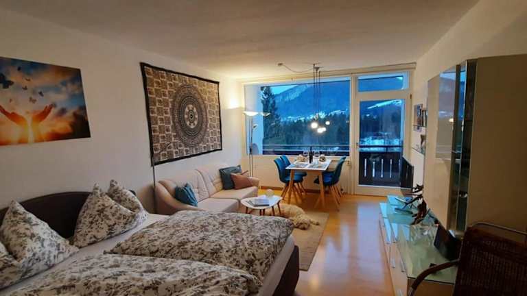 Die Ferienwohnung verfügt über ein Schlafzimmer, ein Badezimmer, Bettwäsche, Handtücher, einen Flachbild-TV mit Satellitenkanälen, einen Essbereich, eine voll ausgestattete Küche und einen Balkon mit Bergblick. Handtücher und Bettwäsche können gegen Aufpreis bereitgestellt werden.