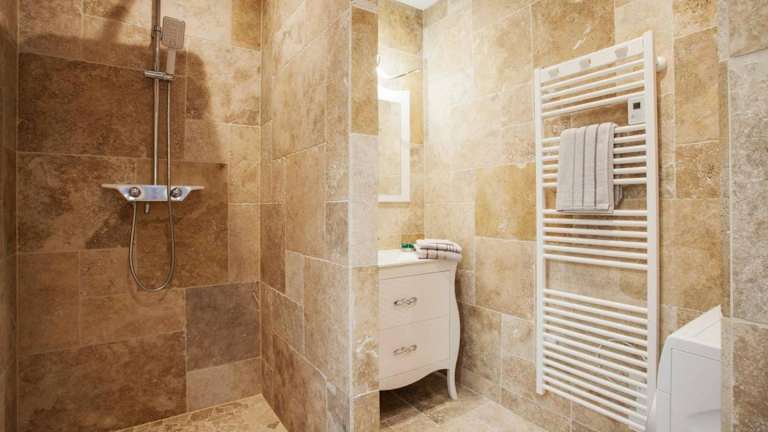 Das Apartment im Legend - Le Saint Laurent - Parking bietet ein gemütliches Schlafzimmer, einen Flachbild-Sat-TV und eine komplett ausgestattete Küche mit Geschirrspüler und Mikrowelle. Eine Waschmaschine steht ebenfalls zur Verfügung. Das Badezimmer ist mit einer Dusche ausgestattet.