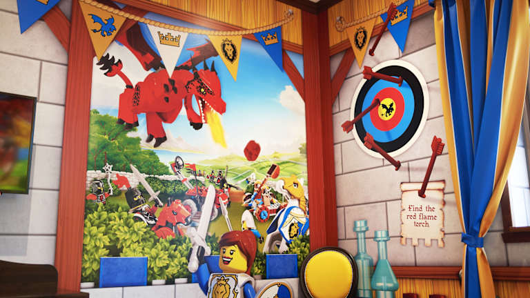 Im LEGOLAND Castle Hotel können Sie zwischen verschiedenen Themenzimmern wählen, darunter Princess-, Wizard- und Dragon-Knight-Zimmer. Alle Zimmer sind liebevoll gestaltet und verfügen über ein eigenes Bad mit Dusche und kostenfreien Pflegeprodukten. Die Zimmer sind klimatisiert und mit einem Schreibtisch ausgestattet. Hier können Sie spielen und schlafen wie echte Ritter und Prinzessinnen.
