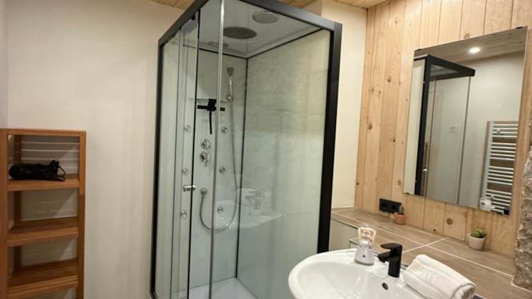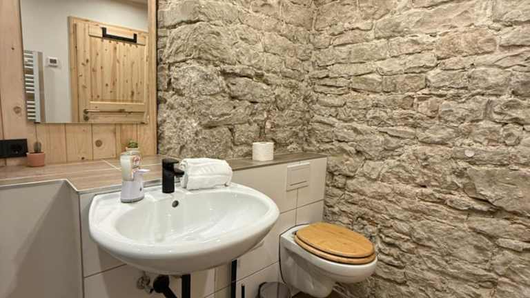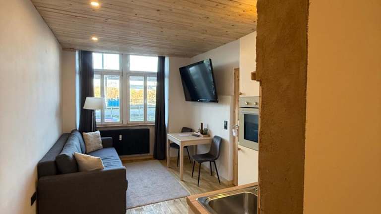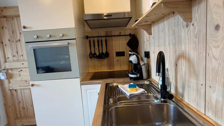 Die Ferienwohnung verfügt über ein Schlafzimmer, eine Küche mit Kühlschrank und Ofen, einen Flachbild-TV, einen Sitzbereich sowie ein Badezimmer mit Dusche. Handtücher und Bettwäsche werden bereitgestellt. Ein Babybett kann auf Anfrage für Kleinkinder bis 3 Jahre zur Verfügung gestellt werden.