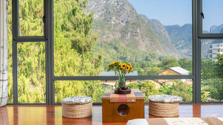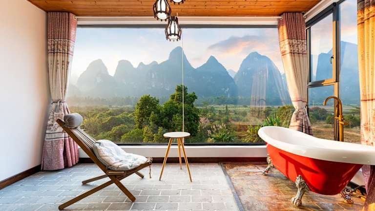 Die Zimmer im Leisure Courtyard Hotel Yangshuo sind komfortabel ausgestattet und verfügen über Annehmlichkeiten wie Klimaanlage, Schreibtisch, Flachbild-TV, eigenes Badezimmer sowie Bettwäsche und Handtücher. Einige Zimmer bieten zusätzlich einen Balkon oder einen Blick auf den Fluss, während andere eine Terrasse mit Bergblick besitzen. Alle Wohneinheiten sind mit einer Kaffeemaschine und einem Kühlschrank ausgestattet.