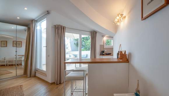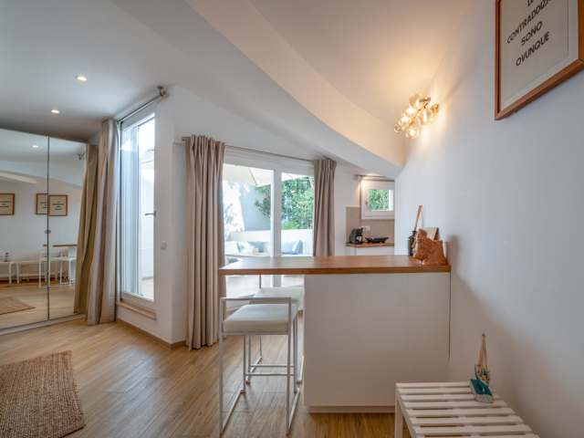 Die Unterkunft ist klimatisiert und verfügt über ein Schlafzimmer, eine Küche mit Kühlschrank und Mikrowelle, einen Flachbild-TV, einen Sitzbereich sowie ein Badezimmer mit Bidet. Handtücher und Bettwäsche werden bereitgestellt. Eine Terrasse ist ebenfalls vorhanden.