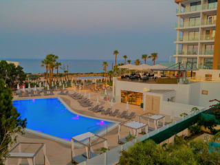 Das Leonardo Crystal Cove Hotel & Spa - Adults only in Protaras ist ein luxuriöses Hotel, das sich ideal für einen erholsamen Urlaub zu zweit eignet. Mit seinen 2 Pools, dem Wellnesscenter und der Nähe zu den Stränden bietet es den perfekten Ort, um sich zu entspannen und die Sonne zu genießen. Die Zimmer sind modern und komfortabel eingerichtet und bieten Annehmlichkeiten wie einen Flachbild-Sat-TV und Tee- und Kaffeezubehör. Die gastronomische Vielfalt des Hotels umfasst zwei Restaurants, in denen Sie italienische und internationale Küche genießen können. Darüber hinaus gibt es auch zwei Bars, in denen Sie erfrischende Cocktails und Getränke erhalten. Das Hotel bietet zudem eine Reihe von Sporteinrichtungen wie einen Tennisplatz und ein Fitnesscenter. Ein Highlight ist das Wellnesscenter, in dem Sie eine große Auswahl an verjüngenden Anwendungen genießen können. Die freundlichen Mitarbeiter an der Rezeption stehen Ihnen rund um die Uhr zur Verfügung und sprechen mehrere Sprachen.
