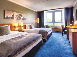 Das Leonardo Hotel Köln Bonn Airport verfügt auf insgesamt 6 Etagen über 19 Doppel-, 78 Twinbed-, und 80 Einzelzimmer in unterschiedlichen Kategorien ( z.B. Standard- oder Komfortkategorie). Ferner finden unsere Gäste 6 komplette Nichtraucher-Etagen sowie behindertengerechte Zimmer vor. Einzel- wie Doppelzimmer verfügen über: Bad/WC, Klimaanlage, Sat-TV, Pay-TV, Radio, Modemanschluss, LAN- Internetzugang, Schreibtisch, separate Sitzgelegenheit, Couchtisch und Telefon.