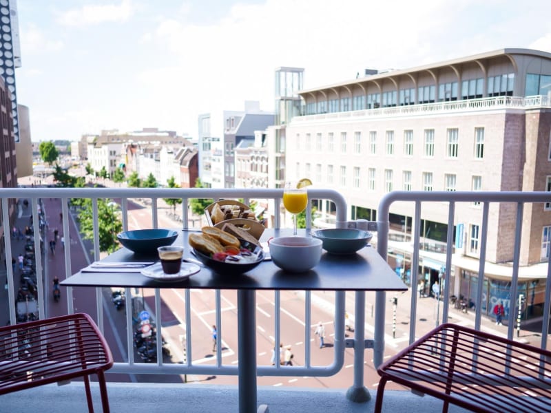Ein guter Start in den Tag ist sehr wichtig, deshalb möchten Sie gerne ein reichhaltiges Frühstück zu sich nehmen, oder? Im Leonardo Hotel Utrecht City Center können Sie aus einer Vielzahl von Frühstücksoptionen wählen. Sie können sich auch in der Coffee Lounge des Leonardo Hotel Utrecht City Center entspannen, die 24 Stunden am Tag, sieben Tage die Woche zur Verfügung steht. Informationen zum Restaurant Sie frühstücken morgens in unserem Frühstücksrestaurant. Wir verstehen, dass Sie während Ihres Aufenthalts so viel wie möglich von der Stadt entdecken möchten. Die schönsten Bars und die besten Restaurants sind von unserem Hotel im Stadtzentrum zu Fuß erreichbar. Speisen Sie zum Beispiel in einem der Restaurants an der stimmungsvollen Oudegracht. Wollen Sie die besten Tipps von lokalen Kennern? Unsere Mitarbeiter werden Ihnen gerne ihren eigenen Favoriten nennen. Informationen zur Lounge Sie sind nach einer langen Sitzung ins Hotel zurückgekehrt. Vielleicht wollen Sie aber auch schon früh zu einem Stadtbummel aufbrechen oder Sie kommen nach einem langen Flug spät im Hotel an. In jeder dieser Situationen ist es gut, wenn Sie sich in unserer Coffee Lounge in der gemütlichen Atmosphäre Ihres eigenen Wohnzimmers entspannen können. Hier können Sie 24 Stunden am Tag, sieben Tage die Woche eine Tasse Kaffee oder Tee trinken. Wenn Sie noch etwas arbeiten müssen, können Sie unser kostenloses Wi-Fi nutzen. Gleich neben der Lounge befindet sich unser Hotelrestaurant, in dem Sie sowohl mittags als auch abends essen können und von dem aus Sie einen herrlichen Blick auf das Stadtzentrum von Utrecht haben.
