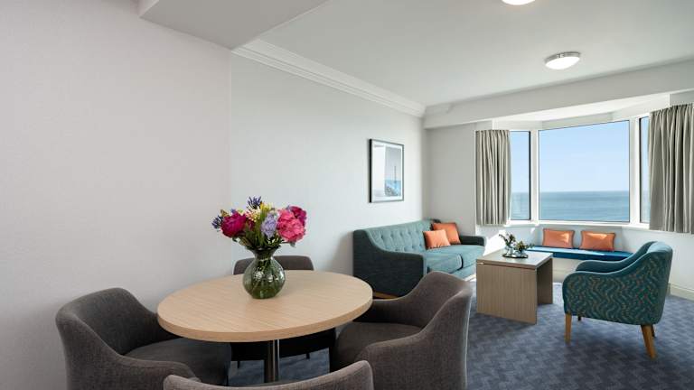 Die klimatisierten Zimmer bieten modernen Komfort mit einem Doppelbett, Queensize- oder Kingsize-Bett. Dazu gehören Annehmlichkeiten wie ein Safe, eine Minibar, ein Schreibtisch, ein Kühlschrank und eine Tee-/Kaffeemaschine. Im Badezimmer sind eine Dusche, eine Badewanne, Haartrockner und Kosmetikartikel vorhanden. Viele Zimmer bieten einen Blick auf das Meer, und es sind rollstuhlgerechte Zimmer verfügbar.