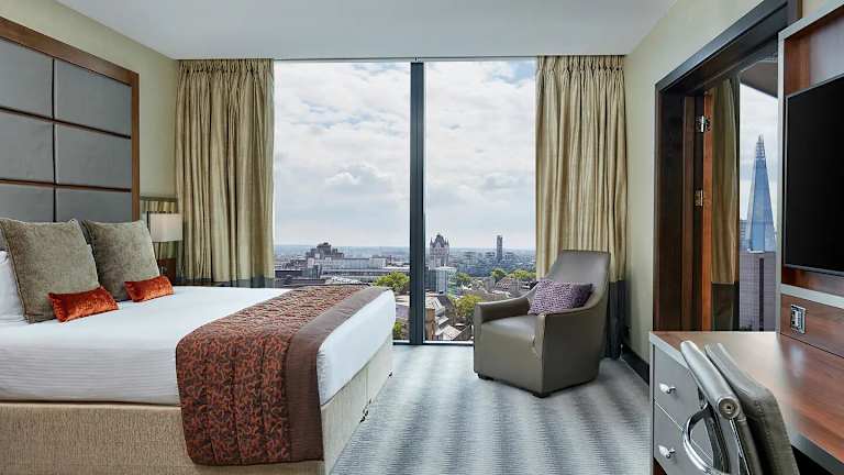 Die Zimmer im Leonardo Royal London Tower Bridge Hotel sind geräumig und komfortabel eingerichtet. Jedes Zimmer verfügt über ein eigenes Badezimmer mit luxuriösen Pflegeprodukten. Zur Ausstattung gehören auch ein LED-TV, kostenfreies WLAN und gemütliche Bademäntel.
