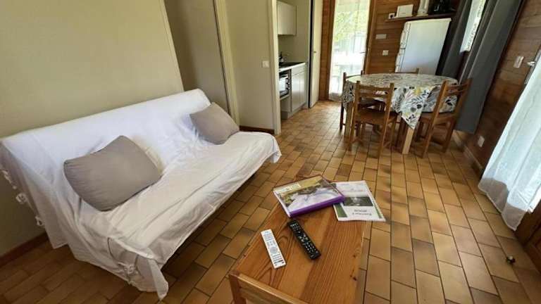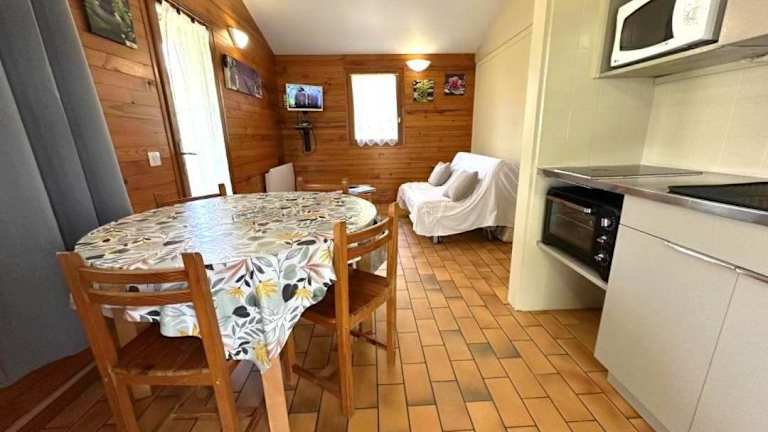 Das Ferienhaus verfügt über ein Schlafzimmer, einen TV und eine voll ausgestattete Küche, die mit einem Kühlschrank, einem Ofen, einer Waschmaschine und einer Mikrowelle ausgestattet ist. Bei Bedarf kann eine Bettwäsche gemietet werden.