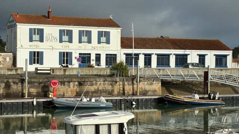 Les Bains Boyardville - Hôtel et Restaurant bietet Übernachtungsmöglichkeiten mit Blick auf den Strand und verfügt über einen Garten, eine Terrasse und ein Restaurant. Die Unterkunft ist eine Nichtraucherunterkunft.