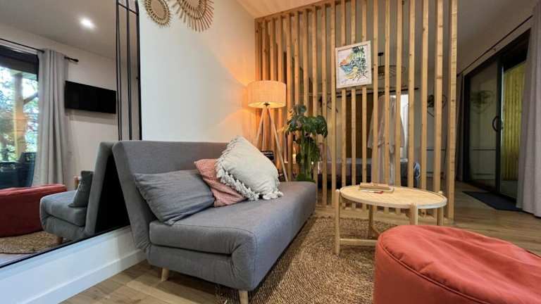 Das Les cabanes du Lac befindet sich in Sévignacq-Thèze und bietet eine ruhige Lage inmitten der Natur. Die Unterkunft ist von wunderschönen Seen und grünen Wäldern umgeben, die zu Spaziergängen und Erkundungstouren einladen. In der Nähe finden Sie auch Möglichkeiten zum Angeln. Der Palais Beaumont und das Zénith-Pau sind nur 24 km entfernt und bieten kulturelle Veranstaltungen und Unterhaltungsmöglichkeiten. Der Flughafen Pau Pyrénées liegt etwa 22 km von der Unterkunft entfernt.