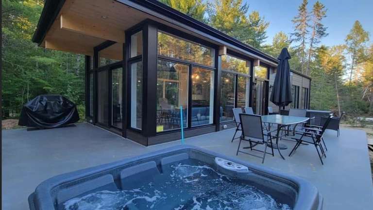 Das Les Chalets Double K # 1 in Saint-Alexis-des-Monts bietet den perfekten Ort für einen entspannten und komfortablen Aufenthalt. Mit einem wunderschönen Garten, einer Gemeinschaftslounge und einer Terrasse können die Gäste die Natur und die frische Luft in vollen Zügen genießen. Die Lodge verfügt über zwei Schlafzimmer, eine gut ausgestattete Küche und ein gemütliches Wohnzimmer. Das kostenfreie WLAN und der Seeblick sind zusätzliche Highlights. Entspannen Sie im Wellnesscenter oder nutzen Sie den eigenen Strandbereich. In der Umgebung gibt es viele Aktivitäten wie Kanufahren und die Erkundung des Sees Sacacomie.