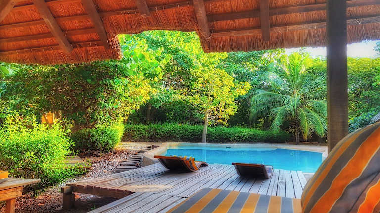 Das Les Collines De Niassam in Palmarin ist die perfekte Unterkunft für einen erholsamen und abenteuerlichen Urlaub. Mit kostenfreien Privatparkplätzen und verschiedenen Unterkunftsoptionen, die teilweise einen atemberaubenden Seeblick bieten, ist dieses Hotel der ideale Ort für einen unvergesslichen Aufenthalt. Genießen Sie ein köstliches kontinentales Frühstück jeden Morgen und entspannen Sie sich im Außenpool oder im schönen Garten. Es gibt auch die Möglichkeit, verschiedene Aktivitäten wie Wandern oder Kanufahren zu unternehmen. Der internationale Flughafen Blaise Diagne liegt nur 91 km entfernt und die Unterkunft bietet einen kostenpflichtigen Flughafentransfer.