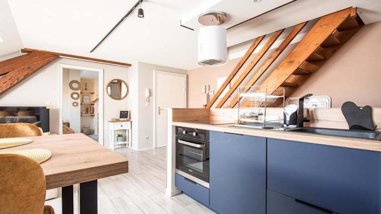 Les Coulisses - Duplex au centre - Parking privé befindet sich im Herzen von Colmar, nur 1 km von Sankt-Martins Stiftskirche und 1,5 km vom Bahnhof Colmar entfernt. Die Unterkunft liegt in der Nähe von Sehenswürdigkeiten wie der Maison des Têtes, die 600 m entfernt ist. Colmar Expo ist 2,5 km entfernt, während die Hohkönigsburg 27 km von der Unterkunft liegt. Der nächstgelegene Flughafen ist der Flughafen Basel-Mülhausen, der sich 56 km entfernt befindet.