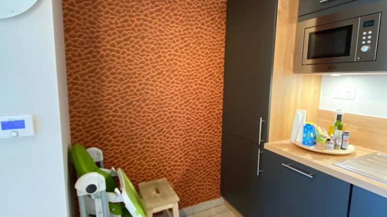 Die Ferienwohnung besteht aus einem Schlafzimmer, einem Wohnzimmer und einer gut ausgestatteten Küche, die mit Kühlschrank und Geschirrspüler ausgestattet ist. Zur Ausstattung gehören ebenfalls eine Kaffeemaschine sowie Handtücher und Bettwäsche.