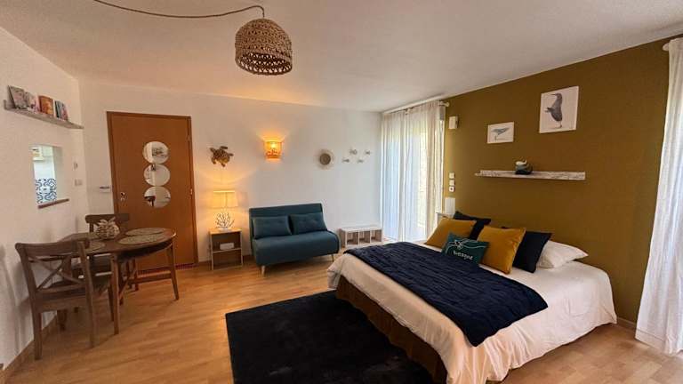 Die Unterkunft befindet sich in der Region Bretagne in Rédené, nahe dem Ort Port Cadic. Zu den nahegelegenen Einrichtungen gehören das Messegelände Lorient, 17 km entfernt, und der Bahnhof Lorient, der 18 km von der Unterkunft liegt. Der nächstgelegene Flughafen, der Flughafen Lorient Bretagne Sud, befindet sich 10 km entfernt.