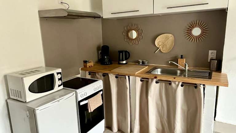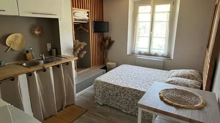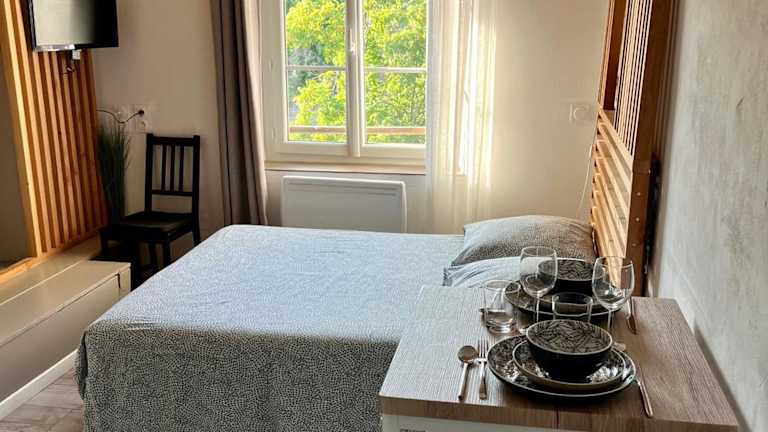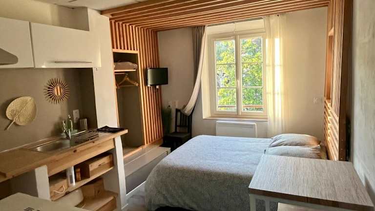 Das charmante Studio Les Glycines bietet komfortable Unterkünfte mit einem Flachbild-TV und einer gut ausgestatteten Küche. Die Küche verfügt über einen Kühlschrank, einen Backofen, eine Mikrowelle, eine Kaffeemaschine und einen Wasserkocher. Genießen Sie den Blick auf die Stadt und den Garten von Ihrem Zimmer aus.
