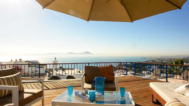 Das Les Jardins du Phare de Sidi Bou Said ist eine wunderschöne Unterkunft mit Meerblick, die sich weniger als 1 km vom Strand Sidi Bou Said entfernt befindet. Hier können Sie in einer klimatisierten Villa mit Balkon und Grillmöglichkeiten einen erholsamen Aufenthalt genießen. Der Garten und die Terrasse bieten einen herrlichen Blick auf die Stadt, und das kostenfreie WLAN ist in allen Bereichen verfügbar. Die Villa verfügt über 2 Schlafzimmer, ein Wohnzimmer, eine voll ausgestattete Küchenzeile und 2 Badezimmer. Handtücher und Bettwäsche werden gestellt. Starten Sie Ihren Tag mit einem kontinentalen, englischen/irischen oder amerikanischen Frühstück und entspannen Sie anschließend in einem Thermalbad in der Villa. Beliebte Sehenswürdigkeiten wie der Strand Corniche, der Strand Amilcar und der Palast Baron d'Erlanger befinden sich in der Nähe. Ein kostenpflichtiger Flughafentransfer zum 11 km entfernten Flughafen Tunis-Carthage wird ebenfalls angeboten.