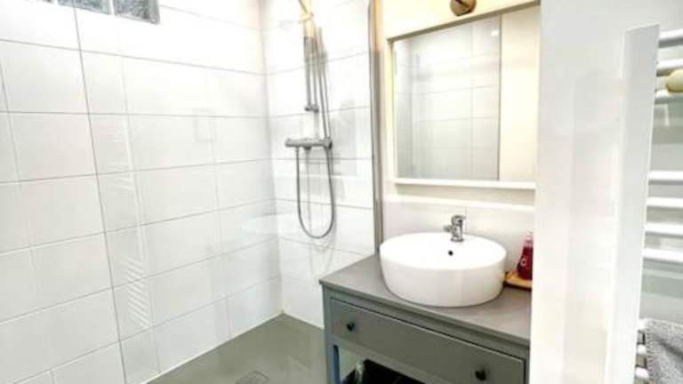 Die Ferienwohnung verfügt über ein Schlafzimmer sowie ein Wohnzimmer, das mit einem Flachbild-TV ausgestattet ist. Eine voll ausgestattete Küche mit Kühlschrank und Geschirrspüler sowie ein Badezimmer mit Haartrockner sind ebenfalls vorhanden. Handtücher und Bettwäsche werden bereitgestellt.