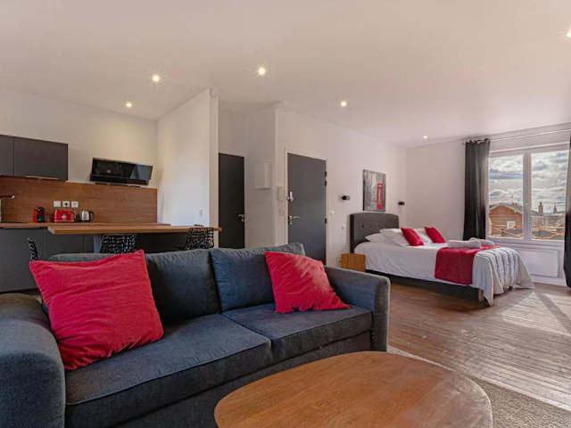 Die Suites proches gare avec parking bieten modern eingerichtete Wohneinheiten mit einem separaten Sitzbereich. Jede Wohneinheit verfügt über eine voll ausgestattete Küche mit einem Esstisch, Sat-TV und ein eigenes Bad mit einer Dusche und einem Haartrockner. Zur Ausstattung gehören auch ein Kühlschrank, ein Geschirrspüler, ein Backofen, eine Kaffeemaschine und ein Wasserkocher. Hier finden Sie alles, was Sie für einen komfortablen Aufenthalt benötigen.