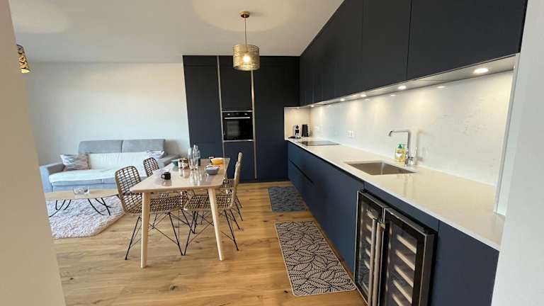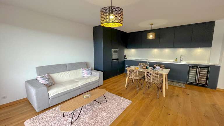 Die Ferienwohnung besteht aus einem separaten Schlafzimmer, einem Wohnzimmer, einer voll ausgestatteten Küche und einem Bad. Zur Ausstattung gehören Klimaanlage und ein Flachbild-TV. Es stehen Gartenmöbel zur Verfügung und die Unterkunft erfüllt die Hygienevorschriften der örtlichen Behörden.