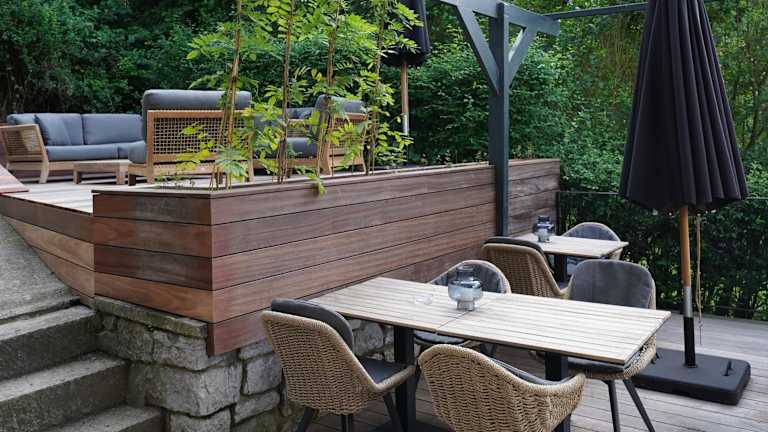 Im Garten oder in der Gemeinschaftslounge können die Gäste entspannen. Die Umgebung bietet vielfältige Möglichkeiten für sportliche Aktivitäten wie Wandern, Angeln und Fahrradfahren.