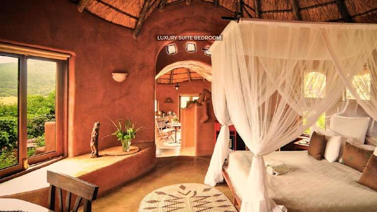 Das Leshiba Wilderness bietet drei verschiedene Arten von Unterkünften. In der Venda Village Lodge erwarten Sie luxuriöse Suiten mit privaten Tauchbecken und einem herrlichen Blick über das Tal. Alle Unterkünfte verfügen über ein eigenes Bad, hochwertige Bettwäsche aus reiner Baumwolle und Solarlampen. Das Hotel legt großen Wert auf Nachhaltigkeit und umweltfreundliche Praktiken.