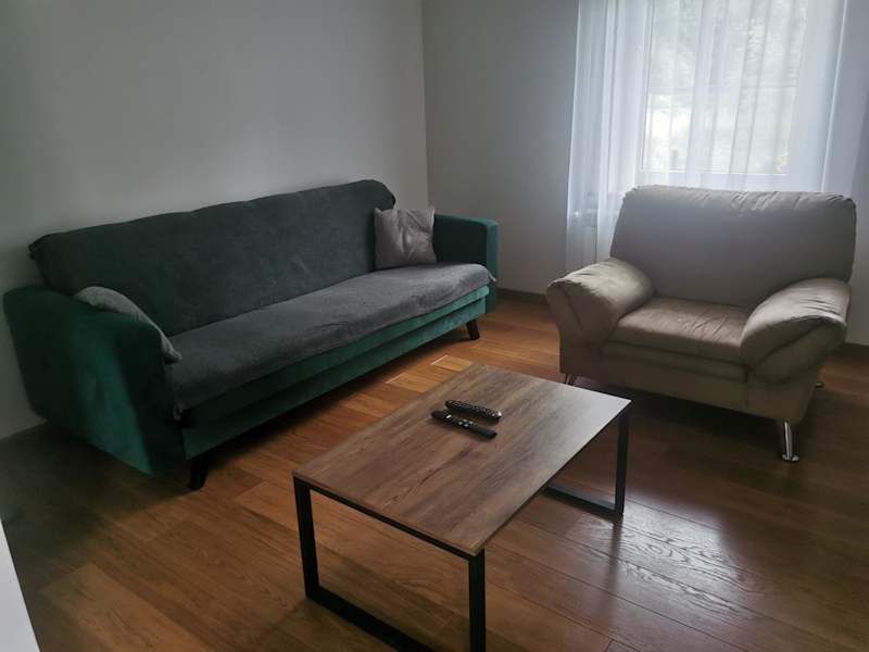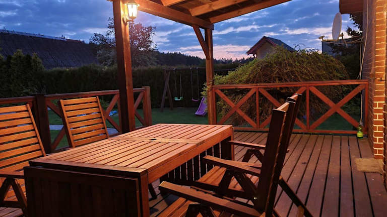 Das Ferienhaus Leśna Chatka verfügt über 3 gemütliche Schlafzimmer, die Ihnen eine erholsame Nachtruhe bieten. Der Wohnbereich ist mit einem Flachbild-TV ausgestattet, so dass Sie Ihre Lieblingssendungen und Filme genießen können. Die Küche ist komplett ausgestattet mit einem Kühlschrank und einem Backofen, so dass Sie Ihre eigenen Mahlzeiten zubereiten können. Es stehen Ihnen auch 2 Badezimmer mit einer Badewanne zur Verfügung. Der Gartenblick von der Terrasse aus lädt zum Entspannen und Genießen der Natur ein.