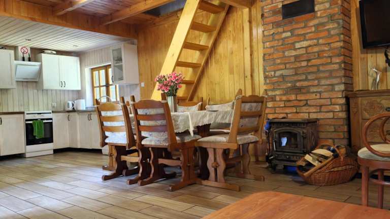 Leśna Ostoja ist ein Ferienhaus, das Grillmöglichkeiten bietet. Das Haus ist von einem Garten umgeben und verfügt über einen kostenlosen Privatparkplatz. Es bietet zudem eine Terrasse mit Blick auf den Garten.