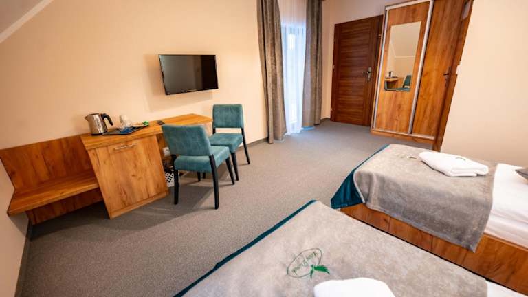 Die Zimmer im Leśny Dworek sind mit einem Flachbild-TV ausgestattet. Jedes Zimmer verfügt über ein eigenes Badezimmer mit kostenlosen Pflegeprodukten, einem Haartrockner und einer Dusche. Zur weiteren Ausstattung gehören ein Kühlschrank und ein Wasserkocher.