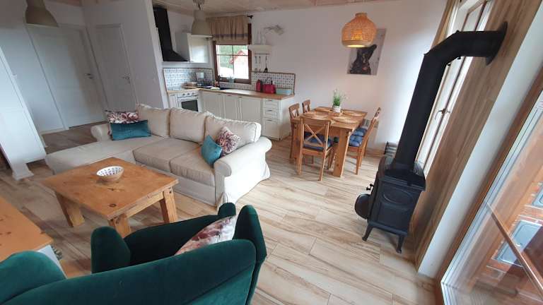 Das Ferienhaus ist ausgestattet mit 2 Schlafzimmern, einer Küchenzeile, die mit einem Kühlschrank und einem Geschirrspüler ausgestattet ist. Zudem gibt es einen Flachbild-TV, einen Sitzbereich und 2 Badezimmer mit Dusche. Handtücher und Bettwäsche werden bereitgestellt.