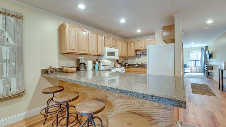 Das Apartment im Cozy Hogan Haus Condo verfügt über 3 Schlafzimmer, die Ihnen ausreichend Platz für eine angenehme Nachtruhe bieten. Der Wohnbereich ist mit einem Flachbild-Kabel-TV ausgestattet, damit Sie Ihre Lieblingssendungen genießen können. Die voll ausgestattete Küche bietet Ihnen alle Annehmlichkeiten, die Sie für die Zubereitung Ihrer Mahlzeiten benötigen, einschließlich Kühlschrank, Geschirrspüler, Waschmaschine, Backofen und Mikrowelle. Handtücher und Bettwäsche werden Ihnen zur Verfügung gestellt, um Ihren Aufenthalt noch komfortabler zu gestalten.