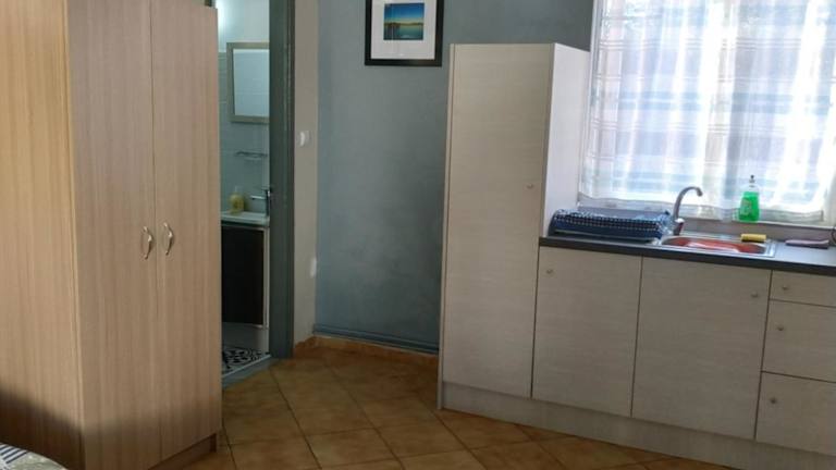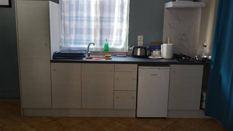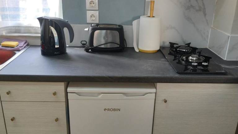 Die Ferienwohnung verfügt über eine gut ausgestattete Küchenzeile, die mit einem Kühlschrank, einer Herdplatte und einem Toaster ausgestattet ist, um Selbstverpflegung zu ermöglichen.
