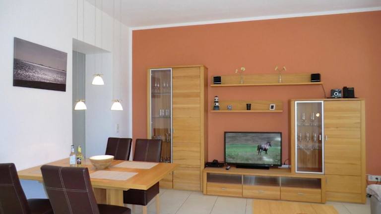 Das Apartment im Leuchtturm - Whg1 bietet Ihnen einen komfortablen Aufenthalt mit einem TV und kostenfreiem WLAN. Die Küchenzeile ist mit allem ausgestattet, was Sie benötigen, darunter ein Kühlschrank, ein Backofen, ein Geschirrspüler, eine Kaffeemaschine und ein Wasserkocher.