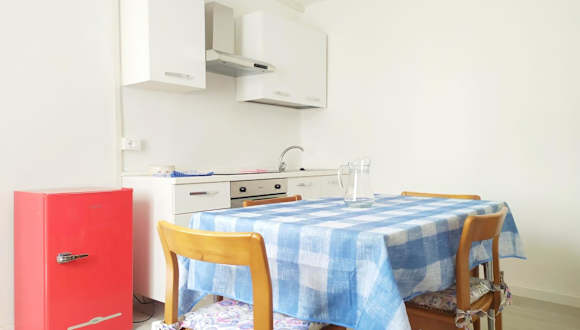 Die Ferienwohnung umfasst ein Schlafzimmer, ein Wohnzimmer, eine vollständig ausgestattete Küche mit Kühlschrank, ein Badezimmer mit Bidet und Haartrockner sowie die Bereitstellung von Handtüchern und Bettwäsche.