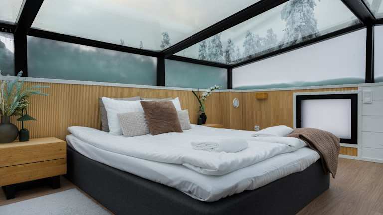 Levin Primus - Your Glass-Roof Gateway to Laplands Magic bietet klimatisierte Unterkünfte mit Gartenblick, einer Terrasse und Zugang zu einer Sauna sowie einem Whirlpool. Die Unterkunft ist privat geführt und erlaubt keine Junggesellen- oder Junggesellinnenabschiede.
