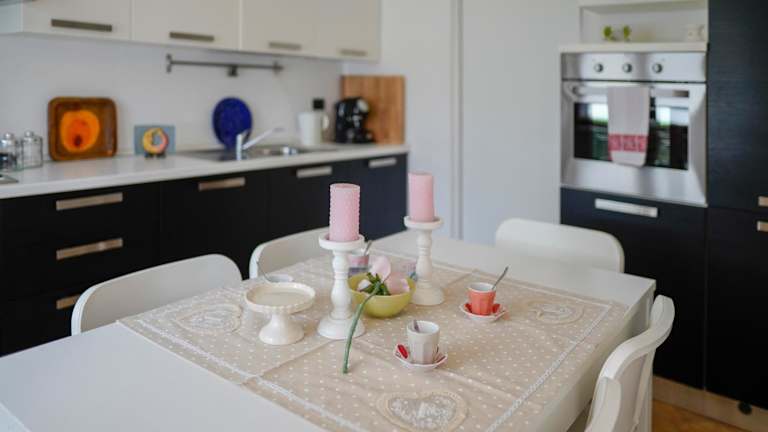 Die Ferienwohnung verfügt über zwei Schlafzimmer und ein Wohnzimmer mit einem Flachbild-TV. Eine gut ausgestattete Küche ist vorhanden, die mit einem Kühlschrank und einem Geschirrspüler ausgestattet ist. Weiterhin stehen zwei Badezimmer mit einem Bidet zur Verfügung. Handtücher und Bettwäsche werden bereitgestellt.
