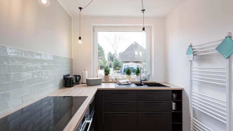 Die Unterkunft ist mit einer voll ausgestatteten Küche ausgestattet. Diese beinhaltet einen Kühlschrank, einen Geschirrspüler, eine Waschmaschine, einen Ofen und eine Herdplatte, die den Gästen die Möglichkeit bietet, eigene Mahlzeiten zuzubereiten.