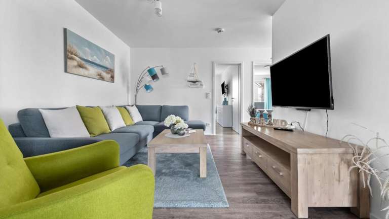 Die Ferienwohnung umfasst 2 Schlafzimmer, eine gut ausgestattete Küche mit Kühlschrank und Geschirrspüler sowie ein Wohnzimmer mit einem TV.