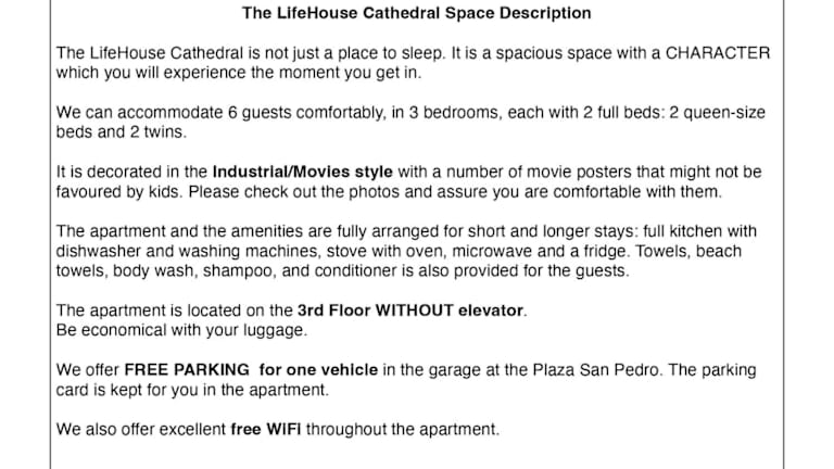 Das klimatisierte Apartment im LifeHouse Cathedral verfügt über 3 Schlafzimmer, ein Wohnzimmer und eine voll ausgestattete Küche. Die Zimmer sind komfortabel eingerichtet und bieten Ihnen einen angenehmen Aufenthalt. Die Küche ist mit einem Kühlschrank und einer Kaffeemaschine ausgestattet, so dass Sie sich jederzeit eine Mahlzeit zubereiten können. Das Apartment verfügt außerdem über ein Badezimmer mit Dusche und kostenlosen Pflegeprodukten. Handtücher und Bettwäsche werden gestellt, so dass Sie sich um nichts kümmern müssen.