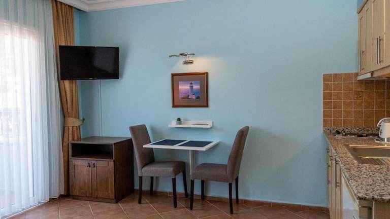 Die Lighthouse Apartments liegen nur 400 m vom wunderschönen Strand Icmeler entfernt, der sich ideal zum Sonnenbaden und Entspannen eignet. In der Umgebung finden Sie zahlreiche Restaurants, Bars und Geschäfte, die zum Bummeln und Verweilen einladen. Der Strand Icon und das Karacan Point Center sind ebenfalls in der Nähe und bieten weitere Unterhaltungsmöglichkeiten. Der internationale Flughafen Rhodos ist bequem mit dem Auto oder dem kostenpflichtigen Flughafentransfer erreichbar.