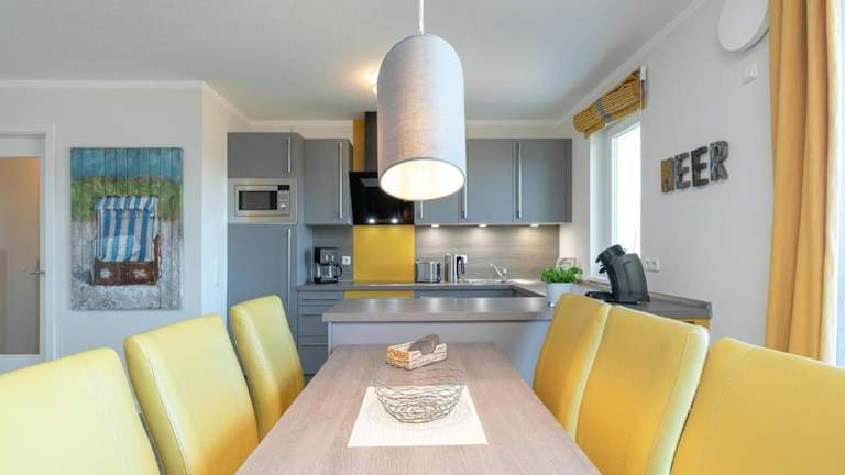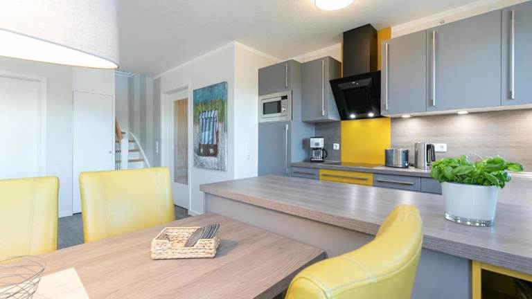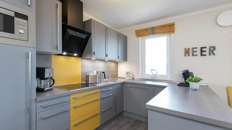Die Ferienwohnung umfasst 3 Schlafzimmer und ist mit einem TV sowie einer voll ausgestatteten Küche ausgestattet. Die Küche bietet einen Kühlschrank, einen Geschirrspüler, eine Waschmaschine, einen Ofen und eine Mikrowelle.