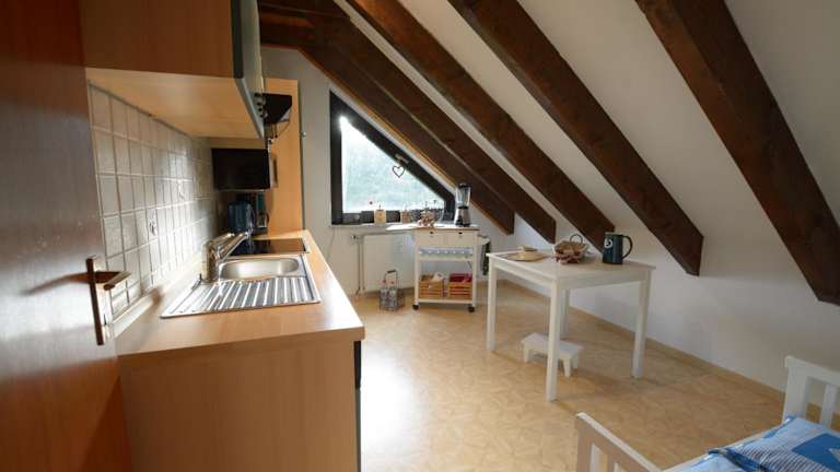 Die Ferienwohnung verfügt über eine gut ausgestattete Küche, in der Selbstverpflegung möglich ist. Lebensmittellieferungen können auf Anfrage und gegen zusätzliche Gebühren organisiert werden.