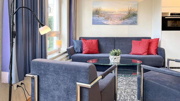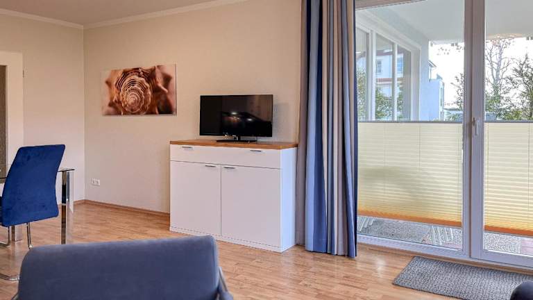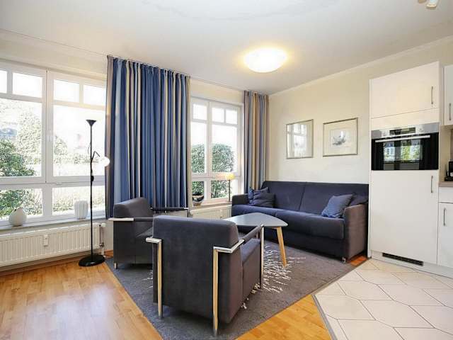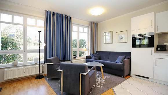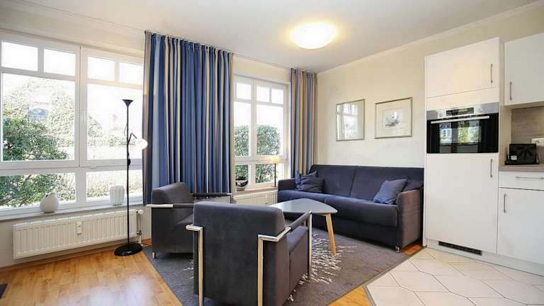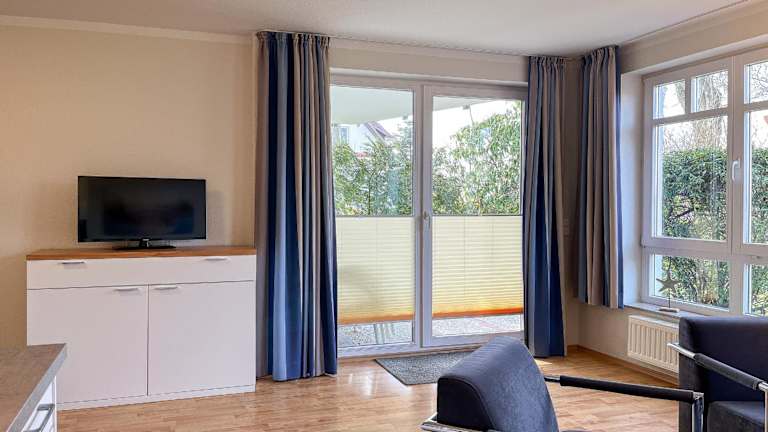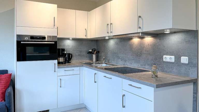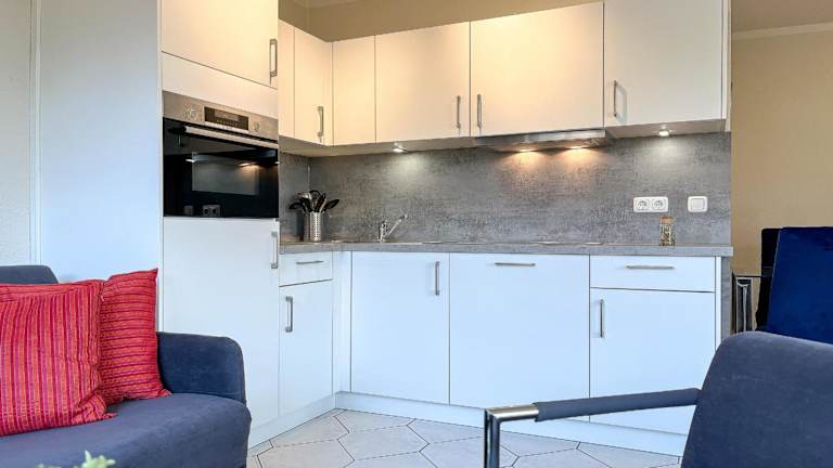 Die Wohnung verfügt über ein Schlafzimmer, einen TV mit Satellitenkanälen sowie eine voll ausgestattete Küche mit Kühlschrank, Geschirrspüler, Waschmaschine, Ofen und Mikrowelle.