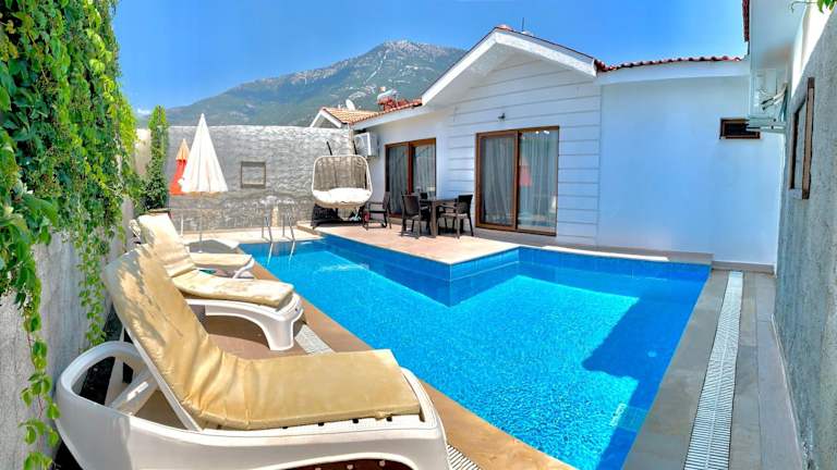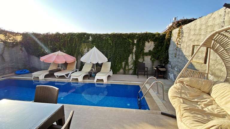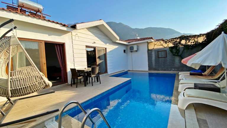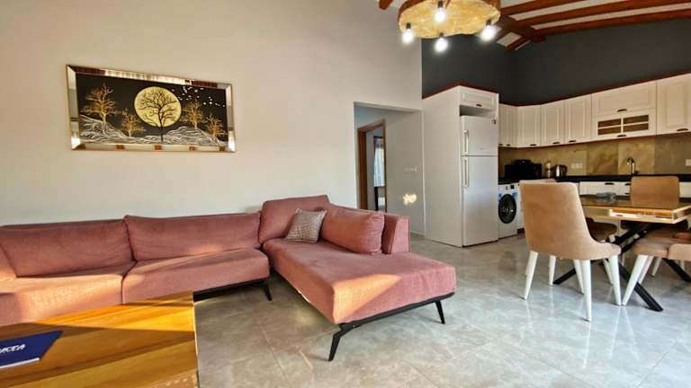Die Likya Akik 2+1 Villa, Özel Havuzlu, bietet eine Unterkunft mit einem saisonalen Außenpool, einem Garten und einer Gemeinschaftslounge. Die Villa ist klimatisiert und verfügt über 2 Schlafzimmer, ein Wohnzimmer sowie 2 Badezimmer mit Dusche und Whirlpool. Zudem steht den Gästen kostenloses WLAN zur Verfügung.